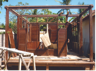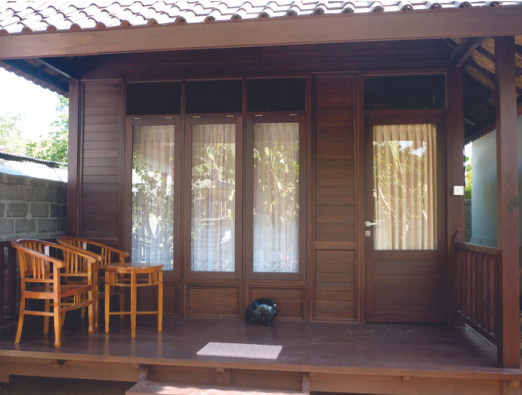 Specification : Wooden house, Column bangkirai wood full coconut, wood top terracota/genteng roof