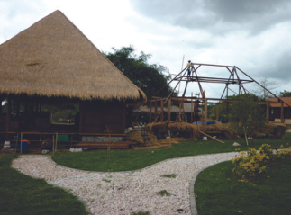 Specification : Wooden house, Restoran 8m x 14m, Column bangkirai woord, structure full coconut wood grass/alang-alang roof